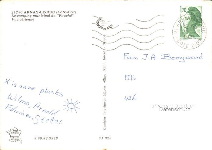 12035692 carte postale Arnay-le-Duc Le camping municipal de Fouche Vue aerienne postalisch gelaufen Erhaltung siehe scans KatCode: 11170021121023