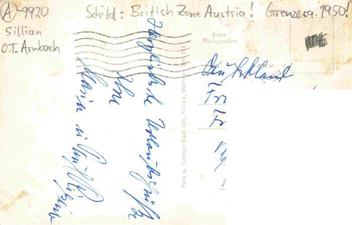 73971203 alte Postkarte Arnbach Sillian Osttirol AT oesterreichisch-Italienische Grenze Schild British Zone Austria postalisch gelaufen Erhaltung siehe scans [FriedD77] KatCode: 11390333070728