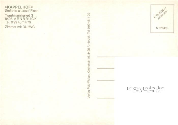 73785306 Arnbruck Gaestehaus Pension Kappelhof postalisch nicht gelaufen Erhaltung siehe scans [FriedD77] KatCode: 11110009276113