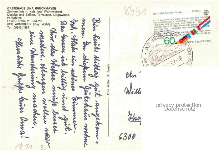 74049653 Arnbruck REGEN Bayern Gaestehaus Bruckmayer postalisch gelaufen Erhaltung siehe scans [FriedD77] alte Postkarte Frie Katcode 11110009276113
