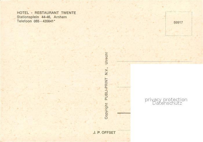 13638592 Arnhem Hotel Restaurant Twente postalisch nicht gelaufen Erhaltung siehe scans [FriedD77] Frie Katcode 11370400