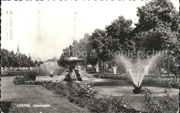 old postcard Arnhem Janssingel Wasserspiele postalisch gelaufen Erhaltung siehe scans