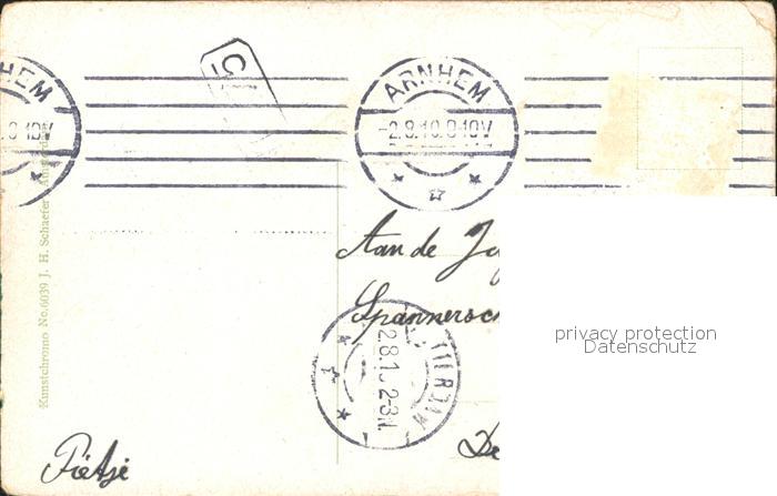 old postcard Arnhem Park Sonsbeek Watermolen Wassermuehle Schwan postalisch gelaufen Erhaltung siehe scans