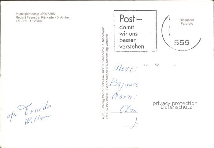 old postcard Arnhem Passagierschiff Solaris postalisch gelaufen Erhaltung siehe scans