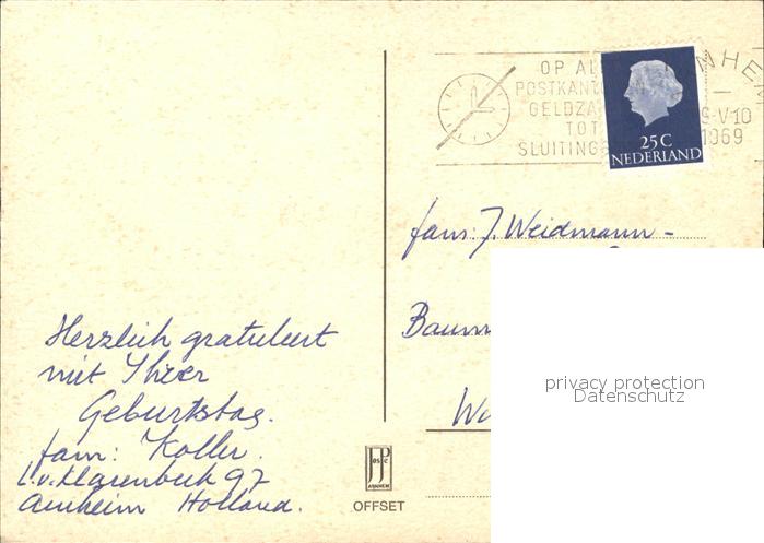 old postcard Arnhem Springbrunnen Park Torbogen Hochhaus Wappen postalisch gelaufen Erhaltung siehe scans