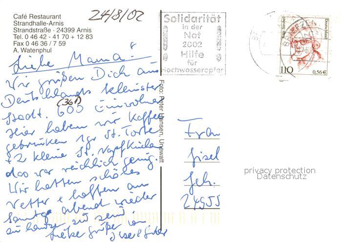 73634388 alte Postkarte Arnis Cafe Restaurant Strandhalle postalisch gelaufen Erhaltung siehe scans [FriedD77] KatCode: 11110001059002