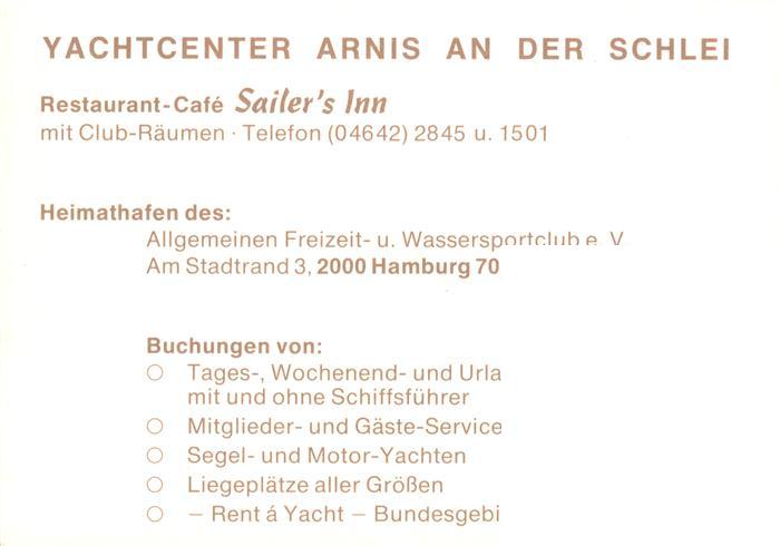 73908382 Arnis Yachtcenter Arnis an der Schlei Restaurant Cafe Sailers Inn postalisch nicht gelaufen Erhaltung siehe scans [WerneD78] KatCode: 11110001059002