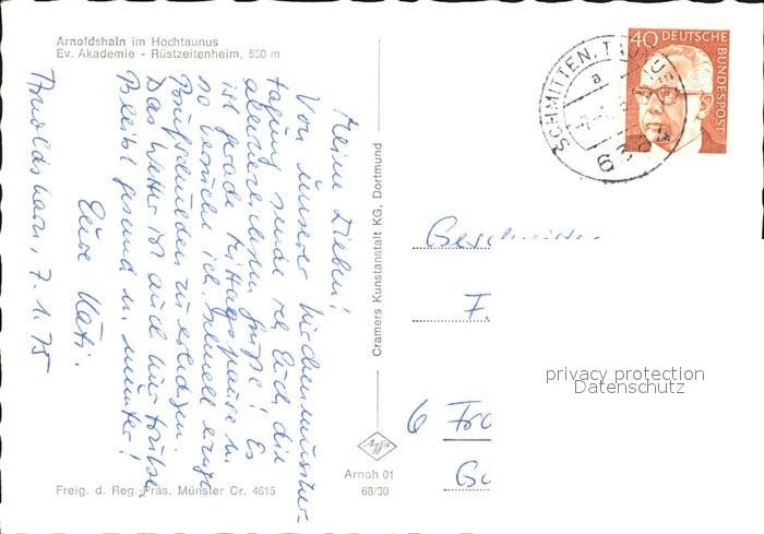 72445889 alte Postkarte Arnoldshain Ev Akademie Ruestzeitenheim Fliegeraufnahme postalisch gelaufen Erhaltung siehe scans KatCode: 11110006434009