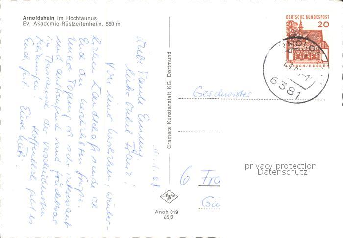 72444737 alte Postkarte Arnoldshain Ev Akademie Ruestzeitenheim im Winter Vogelhaeuschen postalisch gelaufen Erhaltung siehe scans KatCode: 11110006434009
