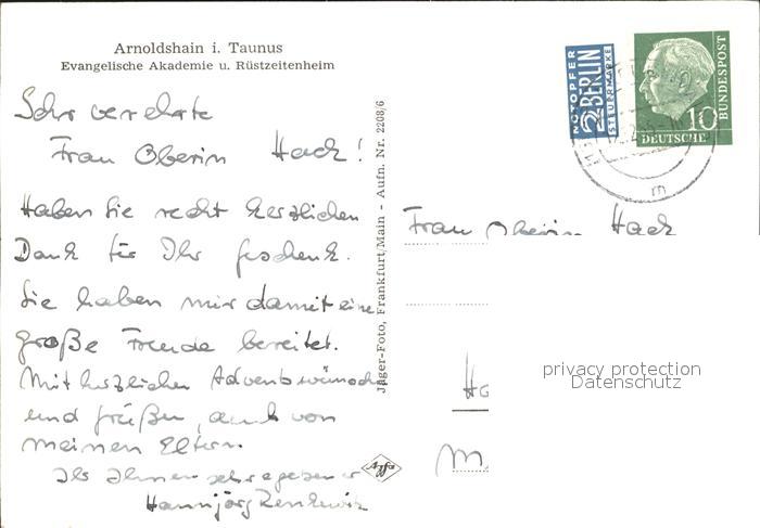 72100809 alte Postkarte Arnoldshain Evangelische Akademie Ruestzeitenheim postalisch gelaufen Erhaltung siehe scans KatCode: 11110006434009