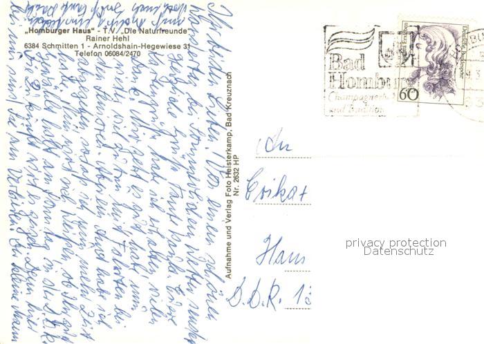 73652634 alte Postkarte Arnoldshain Homburger Haus am Sandplacken Naturfreundehaus Gaststaette postalisch gelaufen Erhaltung siehe scans [FriedD77] KatCode: 11110006434009