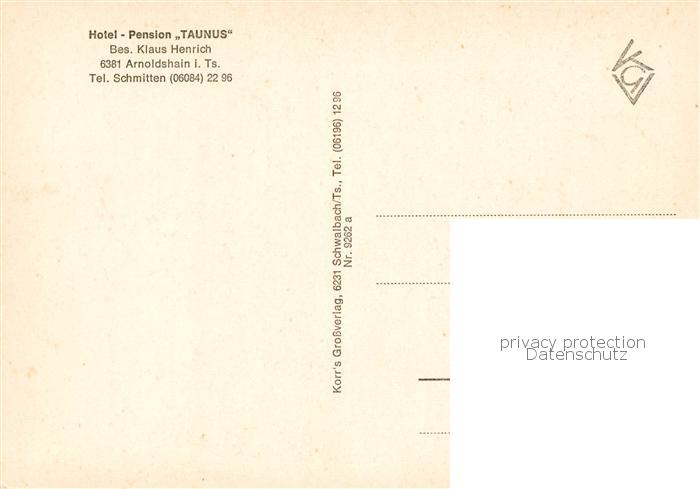 73862932 Arnoldshain Hotel Pension Taunus postalisch nicht gelaufen Erhaltung siehe scans [WerneD78] KatCode: 11110006434009
