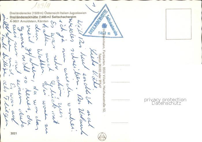 72485270 Arnoldstein Dreilaendereckhuette Seitschacheralm postalisch nicht gelaufen Erhaltung siehe scans KatCode: 11390211020702
