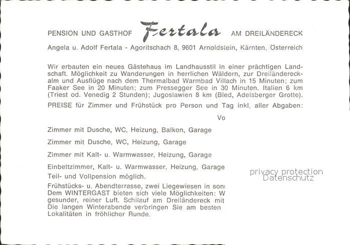72049383 Arnoldstein Pension und Gasthof Fertala postalisch nicht gelaufen KatCode: 11390211020702