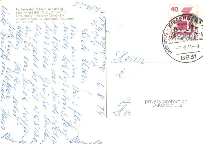 73524181 alte Postkarte Arnsberg Eichstaett Hotel Schloss Arnsberg postalisch gelaufen Erhaltung siehe scans [LiesaD40] KatCode: 11110009176138