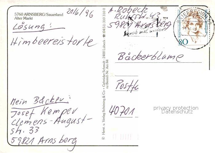 72881297 alte Postkarte Arnsberg Westfalen Alter Markt Brunnen Hotel Kirche postalisch gelaufen Erhaltung siehe scans [FriedD77] KatCode: 11110005958004