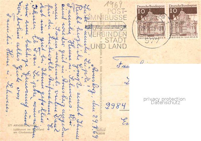 72896416 alte Postkarte Arnsberg Westfalen am Glockenturm postalisch gelaufen Erhaltung siehe scans [LiesaD40] KatCode: 11110005958004