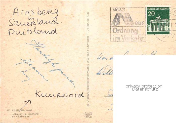 72900055 alte Postkarte Arnsberg Westfalen Am Glockenturm postalisch gelaufen Erhaltung siehe scans [AndreD76] KatCode: 11110005958004