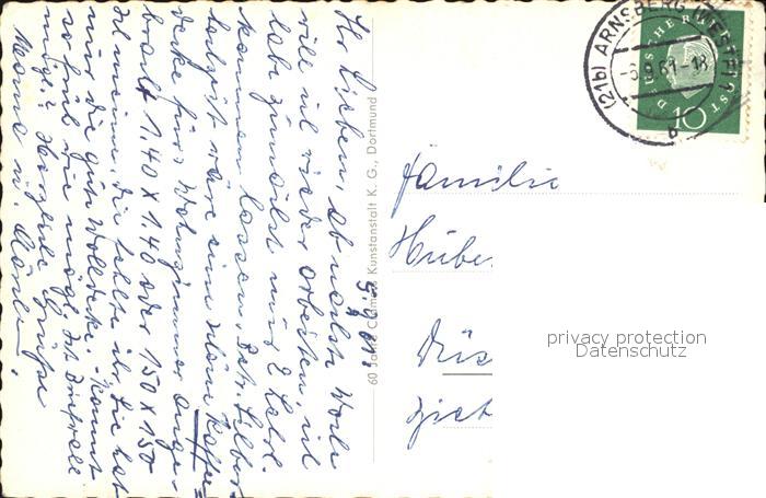 72430823 alte Postkarte Arnsberg Westfalen Am gruenen Turm Glockenturm Hirschberger Tor Propsteikirche Schlossberg Neustadt mit Regierung postalisch gelaufen Erhaltung siehe scans KatCode: 11110005958004