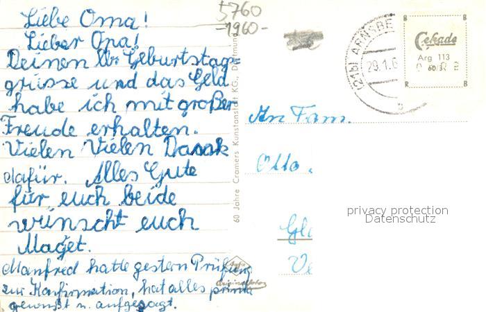 73695541 alte Postkarte Arnsberg Westfalen Ansicht vom Ehmsen-Dankmal postalisch gelaufen Erhaltung siehe scans [LiesaD40] KatCode: 11110005958004