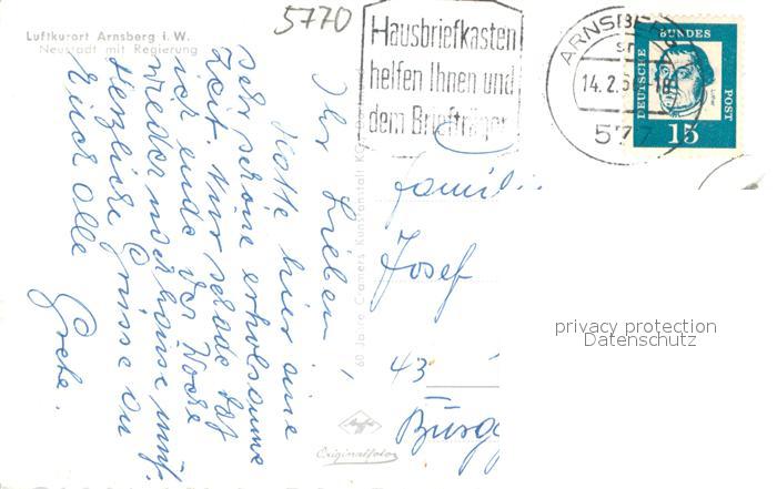 73705699 alte Postkarte Arnsberg Westfalen Fliegeraufnahme postalisch gelaufen Erhaltung siehe scans [WerneD78] KatCode: 11110005958004