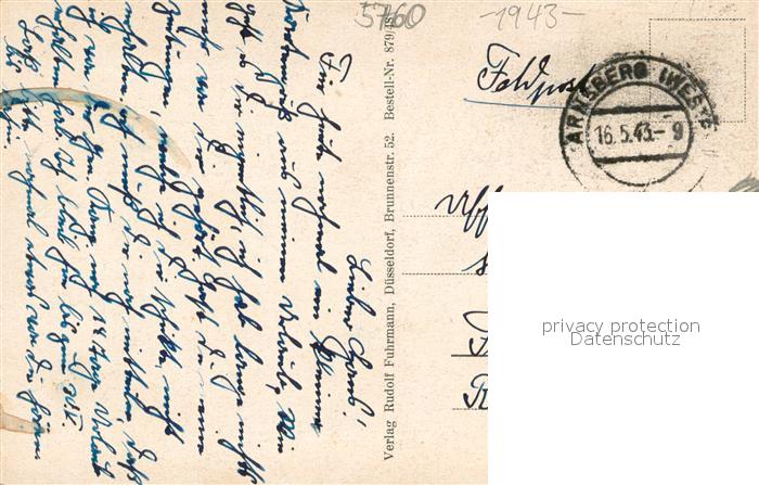 73705702 alte Postkarte Arnsberg Westfalen Fliegeraufnahme postalisch gelaufen Feldpost auf Karte (Motiv) Erhaltung siehe scans [WerneD78] KatCode: 11110005958004