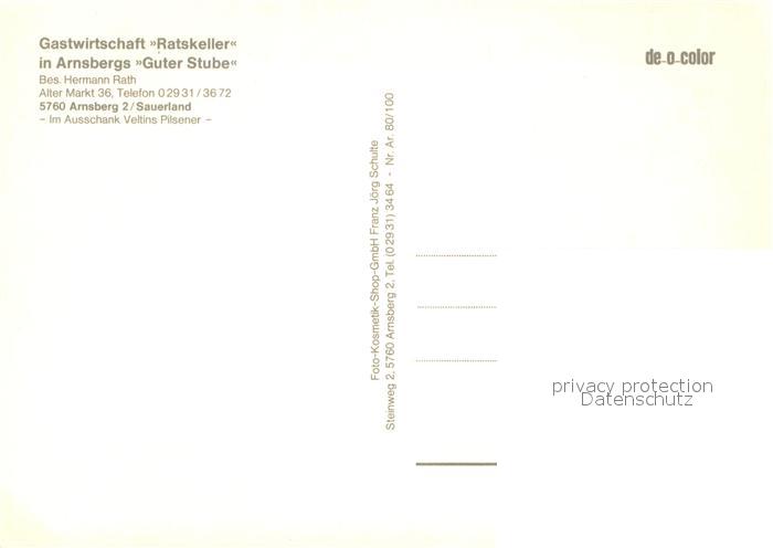 73614981 Arnsberg Westfalen Gastwirtschaft Ratskeller Gaststube Fremdenzimmer postalisch nicht gelaufen Erhaltung siehe scans [WerneD78] KatCode: 11110005958004