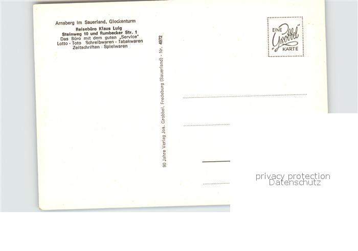 72493382 Arnsberg Westfalen Glockenturm postalisch nicht gelaufen Erhaltung siehe scans KatCode: 11110005958004