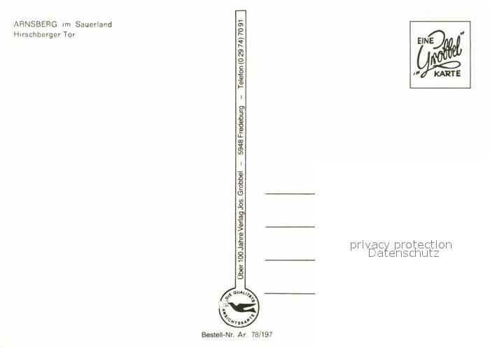 72767547 Arnsberg Westfalen Hirschberger Tor postalisch nicht gelaufen Erhaltung siehe scans [LiesaD40] KatCode: 11110005958004