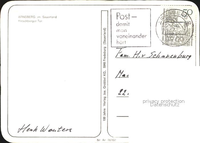 72519871 alte Postkarte Arnsberg Westfalen Hirschberger Tor postalisch gelaufen Erhaltung siehe scans KatCode: 11110005958004