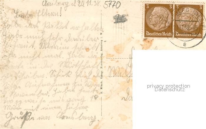 73695537 alte Postkarte Arnsberg Westfalen Hirschberger Tor postalisch gelaufen Erhaltung siehe scans [LiesaD40] KatCode: 11110005958004