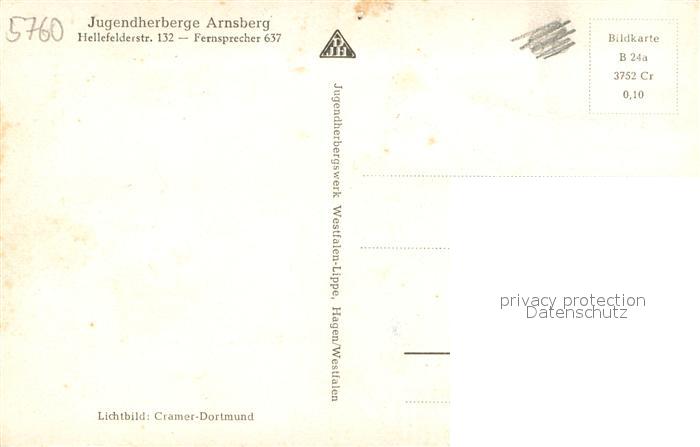 73705704 Arnsberg Westfalen Jugendherberge postalisch nicht gelaufen Erhaltung siehe scans [WerneD78] KatCode: 11110005958004
