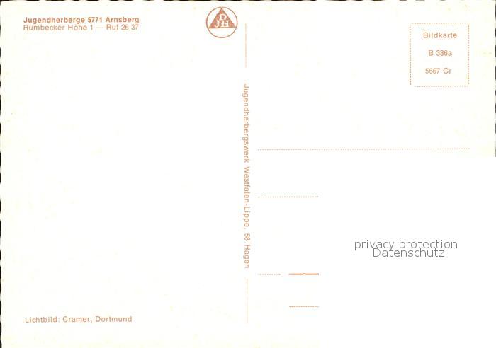 72051750 Arnsberg Westfalen Jugendherberge postalisch nicht gelaufen Erhaltung siehe scans KatCode: 11110005958004