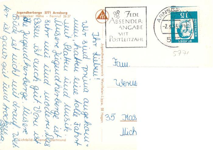 73893618 alte Postkarte Arnsberg Westfalen Jugendherberge postalisch gelaufen Erhaltung siehe scans [FriedD77] KatCode: 11110005958004