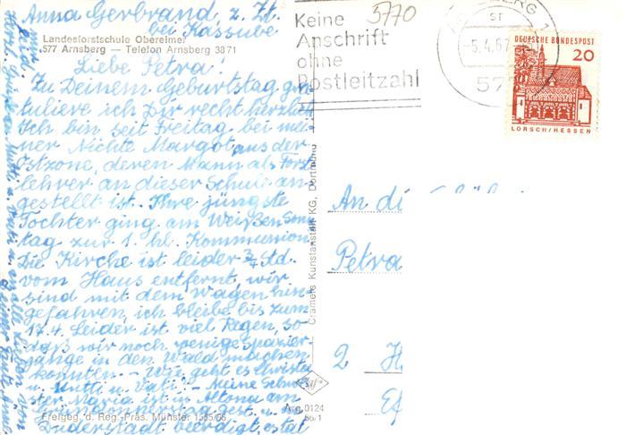 73886893 alte Postkarte Arnsberg Westfalen Landesforstschule Obereimer Fliegeraufnahme postalisch gelaufen Erhaltung siehe scans [WerneD78] KatCode: 11110005958004