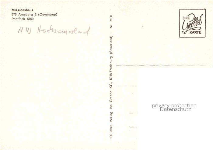 72907390 Arnsberg Westfalen Missionshaus postalisch nicht gelaufen Erhaltung siehe scans [AndreD76] KatCode: 11110005958004