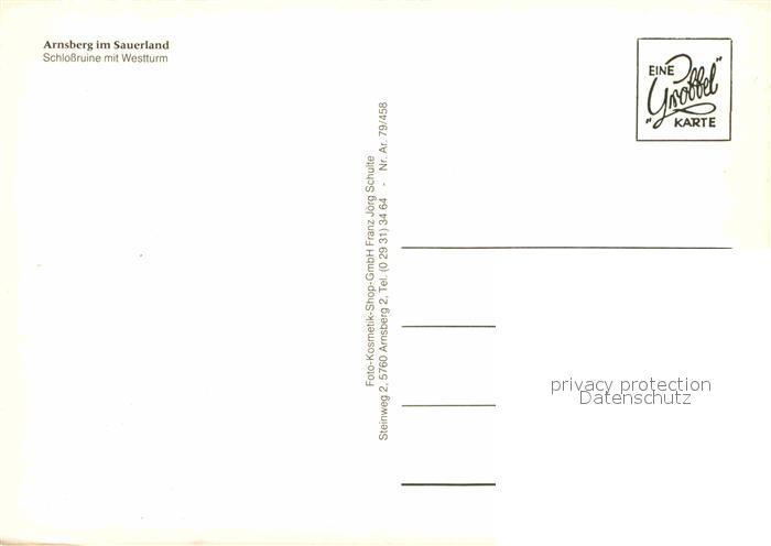 72767548 Arnsberg Westfalen Schlossruine mit Westturm postalisch nicht gelaufen Erhaltung siehe scans [LiesaD40] KatCode: 11110005958004