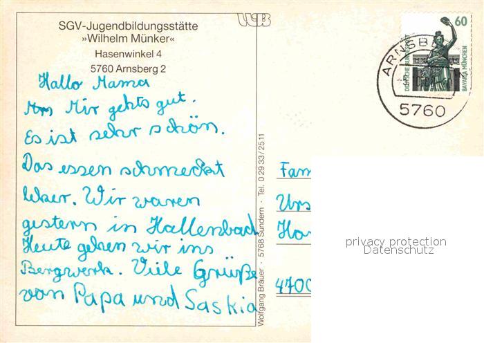 72668366 alte Postkarte Arnsberg Westfalen SGV Jugendbildungsstaette Wilhelm Muenker Fliegeraufnahme postalisch gelaufen Erhaltung siehe scans [WerneD78] KatCode: 11110005958004