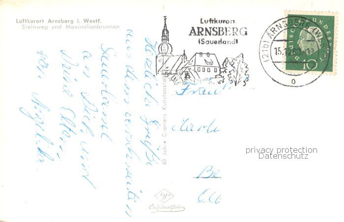 73772646 alte Postkarte Arnsberg Westfalen Steinweg und Maximilianbrunnen postalisch gelaufen Erhaltung siehe scans [FriedD77] KatCode: 11110005958004