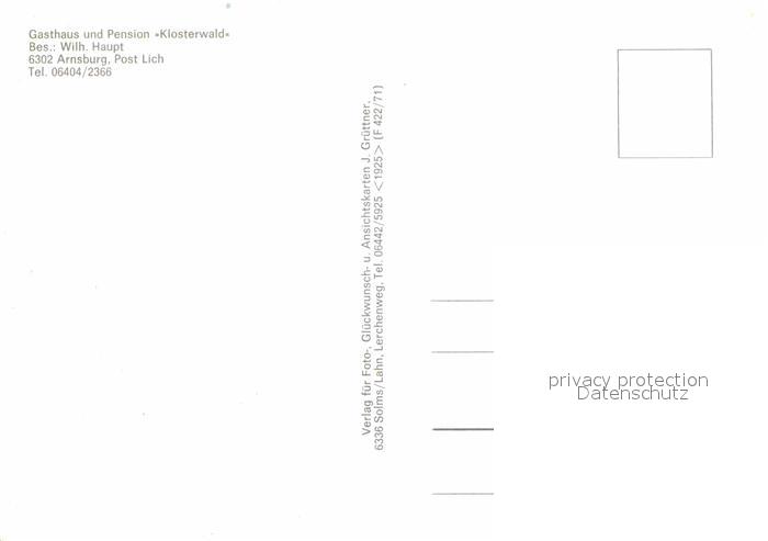 72859797 Arnsburg Hessen Gasthaus Klosterwald postalisch nicht gelaufen Erhaltung siehe scans [NatalD47] KatCode: 11110006531011
