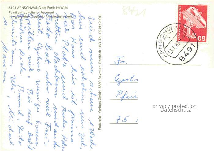 74049617 alte Postkarte Arnschwang Panorama Ortsmotive Kirche Wappen postalisch gelaufen Erhaltung siehe scans [FriedD77] KatCode: 11110009372112