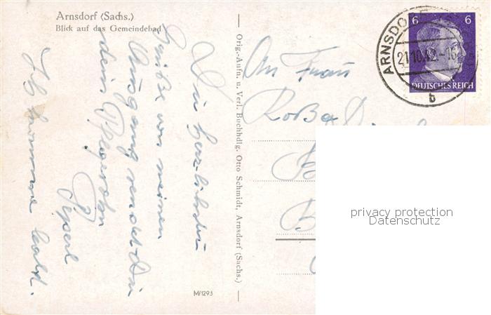73801952 alte Postkarte Arnsdorf Dresden Blick auf das Gemeindebad postalisch gelaufen Erhaltung siehe scans [FriedD77] KatCode: 11110014292005