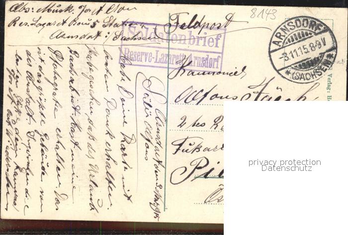 42386963 alte Postkarte Arnsdorf Dresden Kgl Landesanstalt Verwaltungsgebaeude postalisch gelaufen Feldpost Erhaltung siehe scans KatCode: 11110014292005