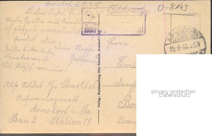 42387780 alte Postkarte Arnsdorf Dresden Kgl Landesanstalt postalisch gelaufen Feldpost Erhaltung siehe scans KatCode: 11110014292005
