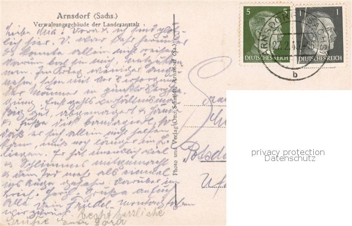73821010 alte Postkarte Arnsdorf Dresden Verwaltungsgebaeude der Landesanstalt postalisch gelaufen Erhaltung siehe scans [FriedD77] KatCode: 11110014292005
