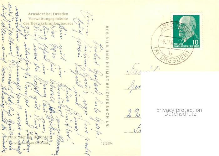 73094196 alte Postkarte Arnsdorf Dresden Verwaltungsgebaeude des Bezirkskrankenhauses postalisch gelaufen Erhaltung siehe scans [LiesaD40] KatCode: 11110014292005