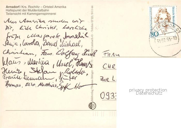 73839935 Arnsdorf Rochlitz Sachsen OT Amerika Dampfeisenbahn Panorama postalisch gelaufen Erhaltung siehe scans [WerneD78] alte Postkarte Wern Katcode 11110014182350