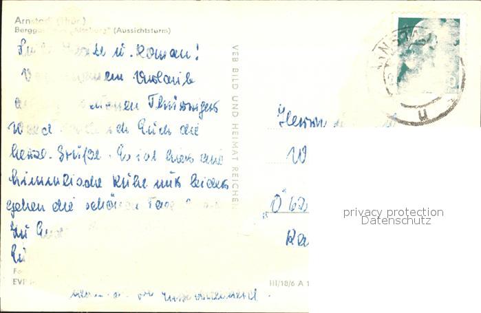 72541799 alte Postkarte Arnstadt Ilm Aussichtsturm postalisch gelaufen Erhaltung siehe scans [AndreD76 kv012box] KatCode: 11110016070004