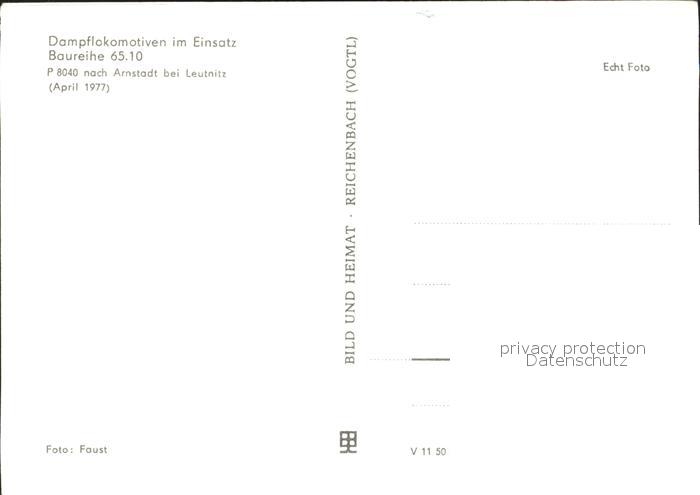 72117920 Arnstadt Ilm Dampflokomotive Baureihe 65.10 postalisch nicht gelaufen KatCode: 11110016070004
