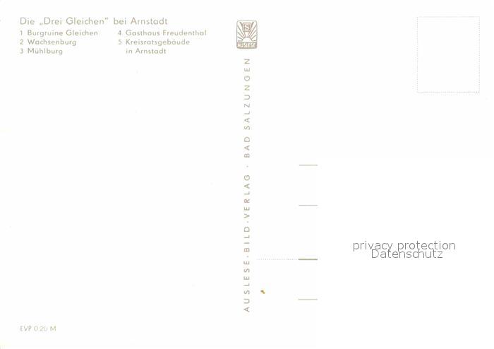 72761249 Arnstadt Ilm Die Drei Gleichen Burgruine Gleichen Wachsenburg Muehlburg Gasthaus Freudenthal Kreistagsgebaeude postalisch nicht gelaufen Erhaltung siehe scans [WerneD78] KatCode: 11110016070004